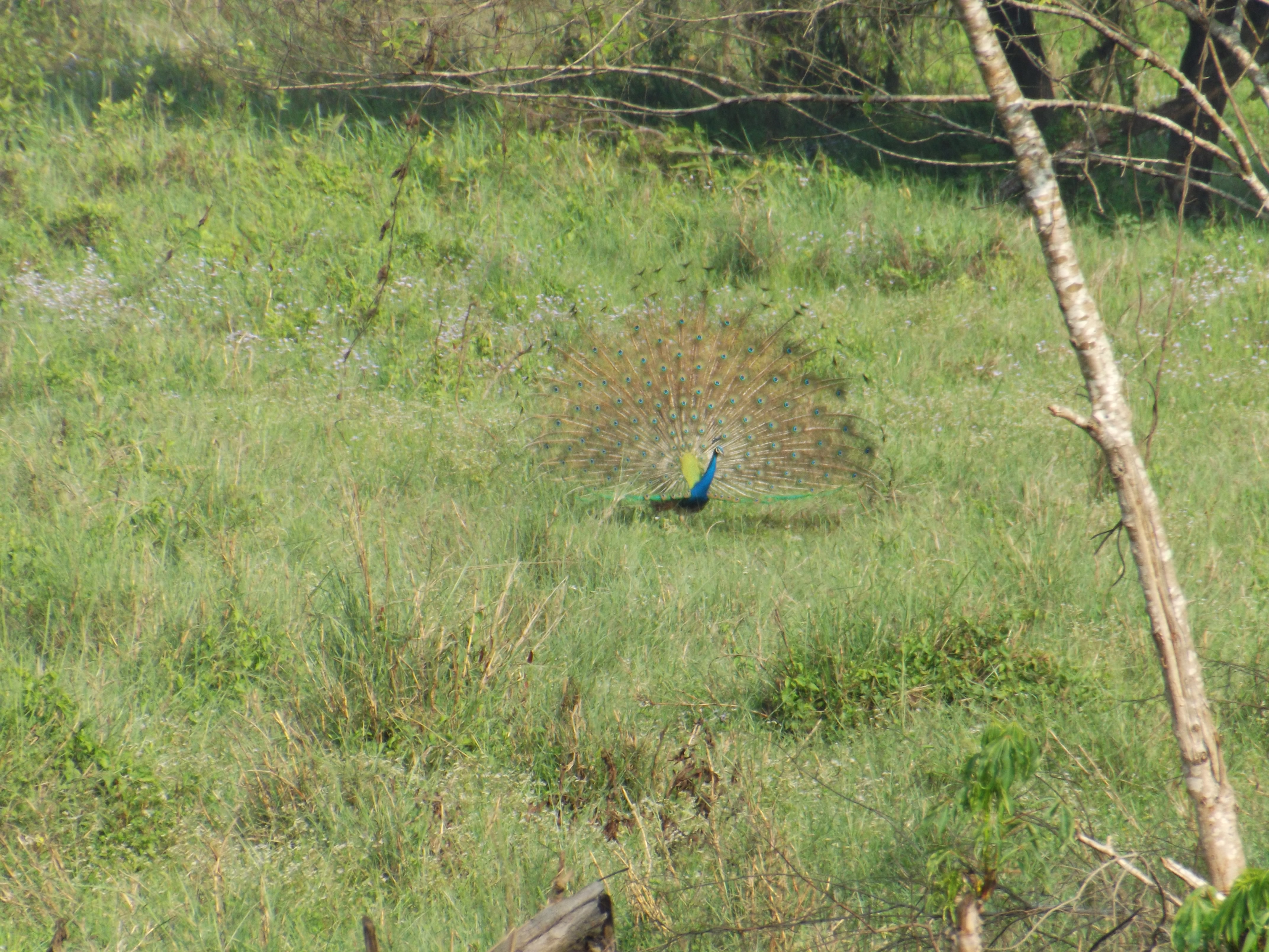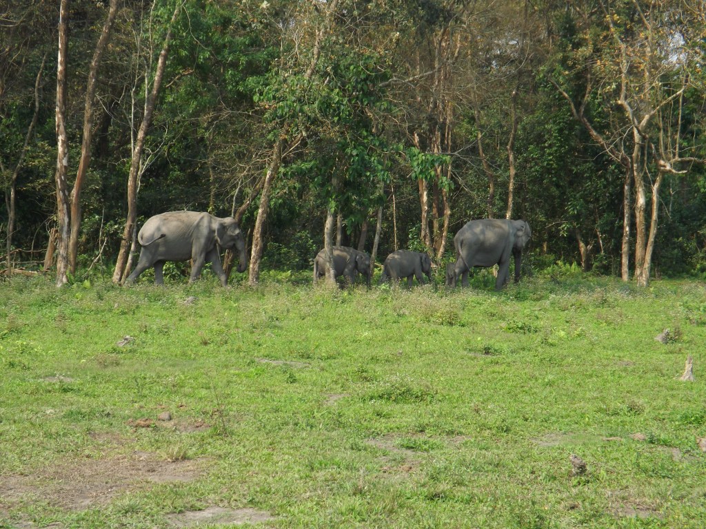 On a single day itself we could see herd of elephants, wild buffaloes, rhinoceros, bison, wild boars and cap langur. Once again the tiger was well hidden inside the Jungle, marking its presence through scratches all over the tree bark. Since the duration was short and the safari was on a continuous move, the bird sighting was very limited to birds that were highly conspicuous like barbets, green pigeons, fairy bluebird, Orioles, minivets, Jungle fowl, raptors etc.