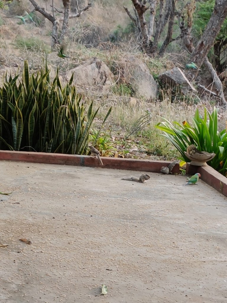 There is a squirrel which is twitching it’s tail again and again and with every twitch is making a sound. What you call it’s sound, I am oblivious of that, but the rhythm is great. The squirrel is in a weird hurry. It sometimes looks here, sometimes there, then picks a nut and breaks it. It then looks at me with weird alertness and quickly starts to eat. I wish I could let the squirrel know that it could have the nut in peace and savour the taste. I was anyway full, not that I even wanted to eat.