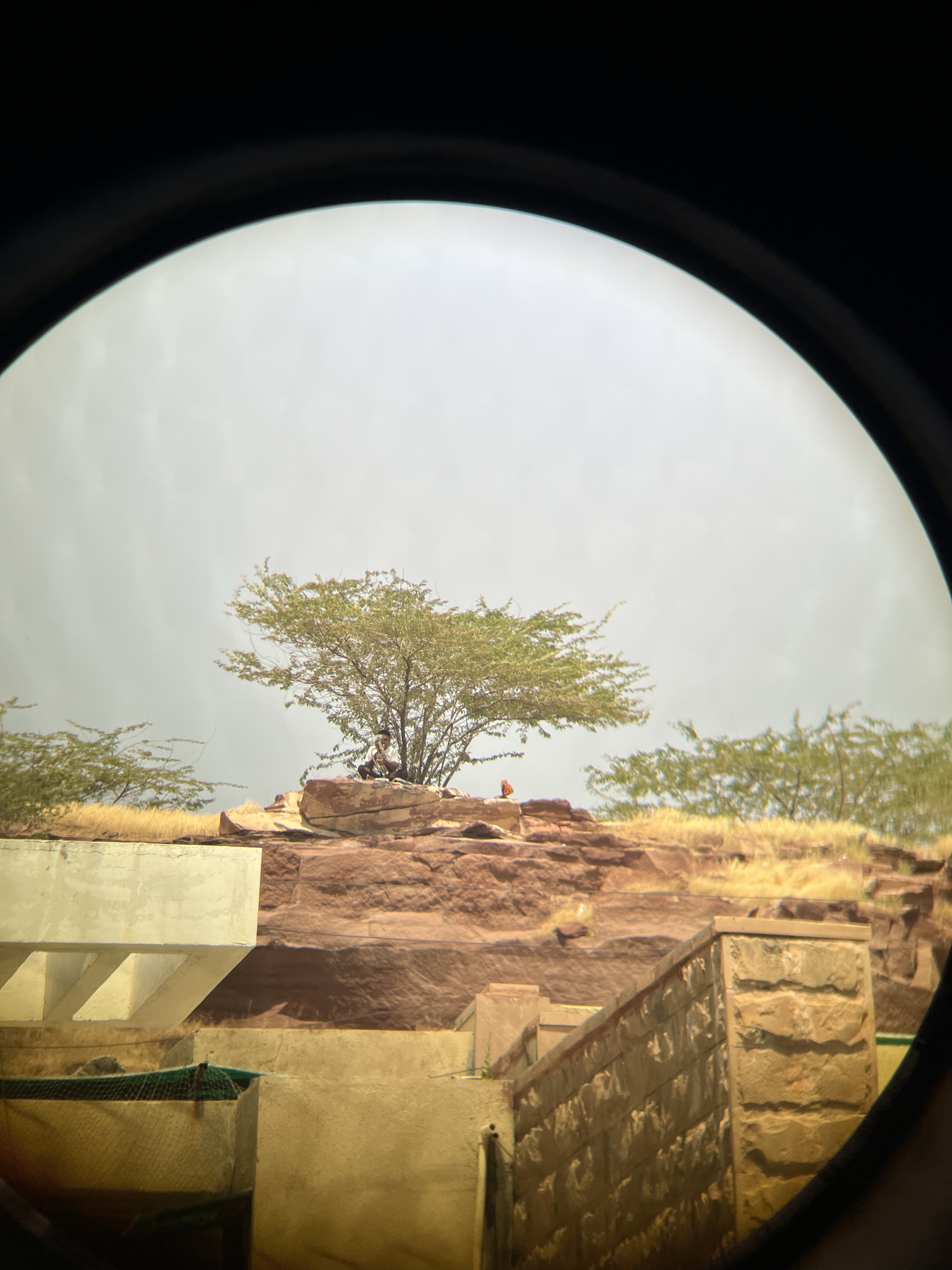 However only today did I notice that beyond the boundary of our society, on the adjoining rocky hillock, underneath a tree, something is shining. It was the tuba of the tuba Player! I don’t know why but seeing him there made me so happy. He was not in his house practicing for himself, but under this blistering Sun about which everyone complains, enjoying the shade of the tree and playing his tuba to his heart’s content for 2 hours each Saturday. He was quite far off, so I had to pick my binoculars to see him. What a blissful and content scene was that. Observing him literally made my day. Now I understand why he chooses the song “नीले गगन के तले”. Thanks for putting up the show each Saturday Tuba-man.